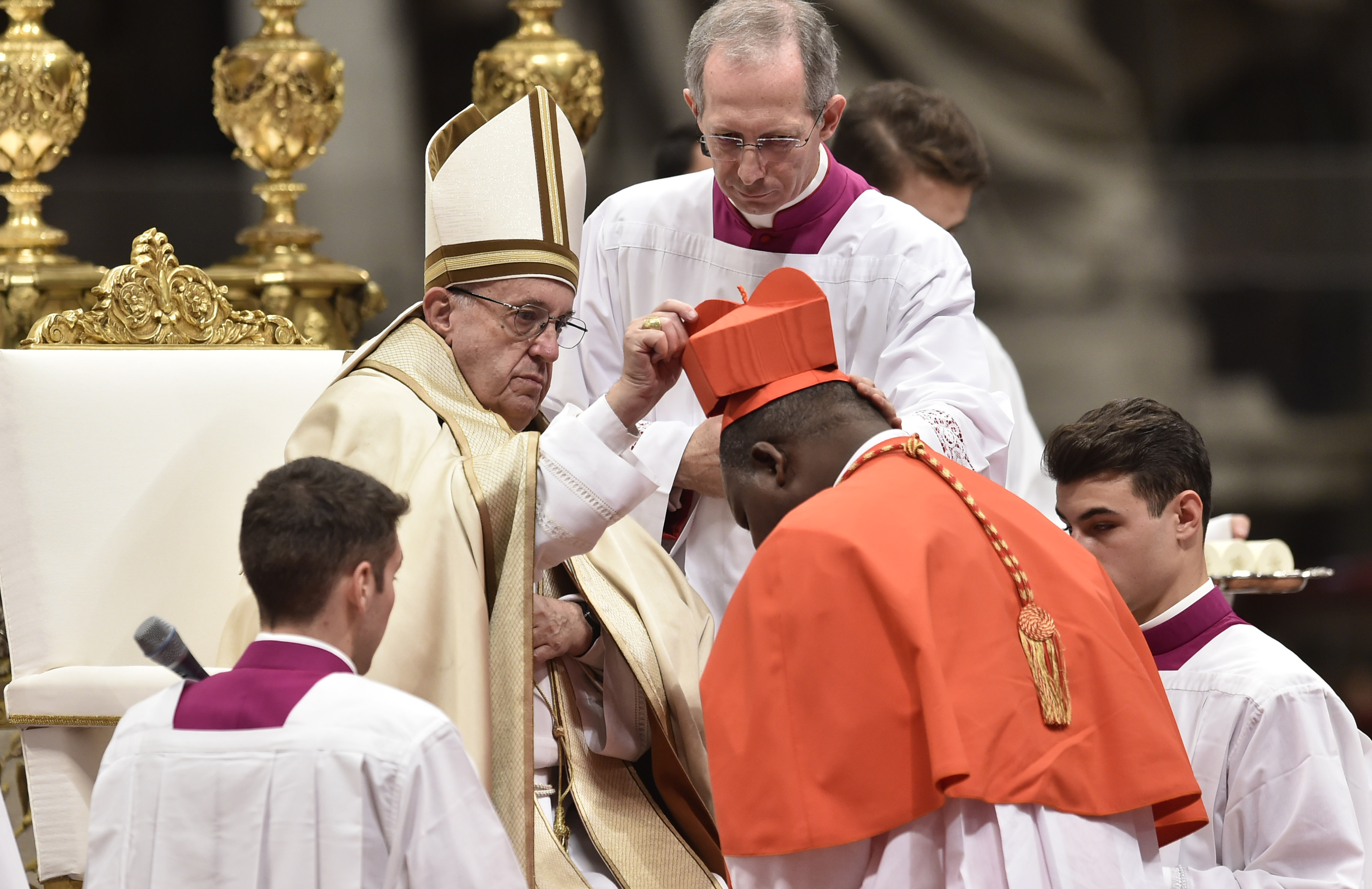 Papa Francesco impone la berretta al cardinale Dieudonné Nzapalainga (19 novembre 2016)
