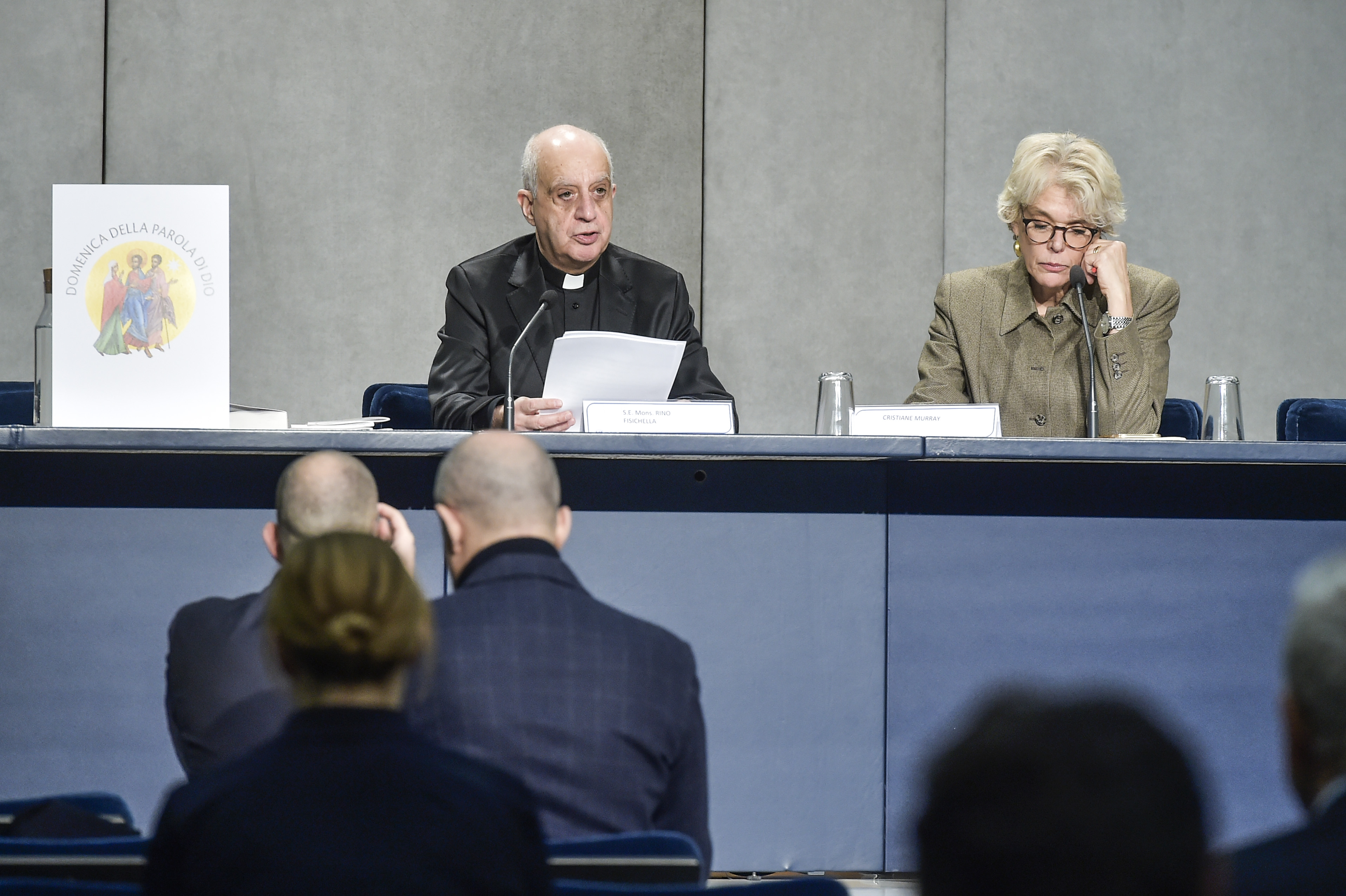 Roma, 17 gennaio 2020: conferenza stampa per la presentazione della prima Domenica della Parola di Dio. Mons. Rino Fisichella e Christiane Murray