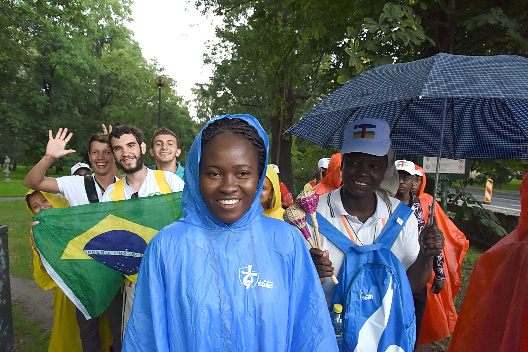 Gmg 2016 Cracovia, 26 luglio 2016: giovani Centrafrica sotto la pioggia