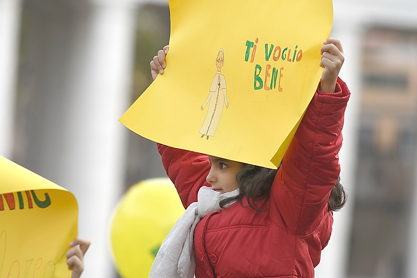 Piazza San Pietro, 12 novembre 2016: Udienza giubilare Papa Francesco – bambina con cartello dedicato a Papa Francesco